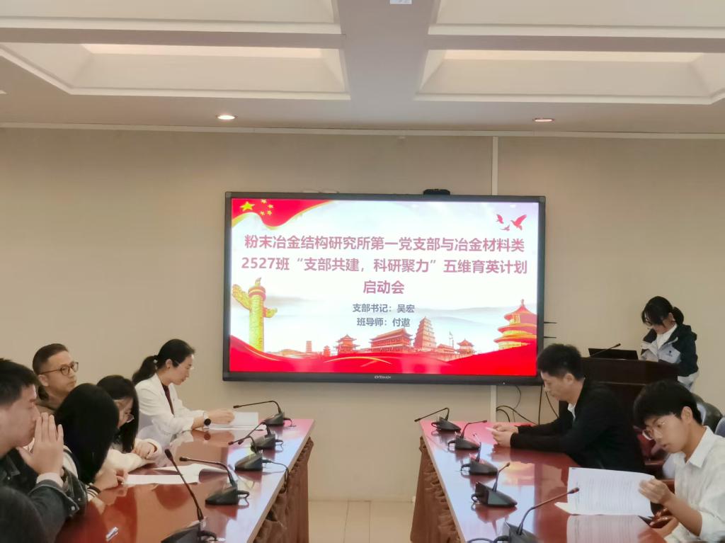 粉末冶金结构材料研究所第一党支部与冶金材料类2527班于三一大楼506举行“支部共建,科研聚力”五维育英计划启动会。会议由党支部书记吴宏主持。会议伊始,吴宏同志指出,高校党支部与本科班级联动是打破科研与教学壁垒、推动优质资源下沉的重要探索。五维育英计划旨在依托支部党员的科研经验与行业资源,为冶材2527班学子搭建“阶梯式”培养平台,帮助同学们提前感知科研魅力、明晰专业发展路径,...