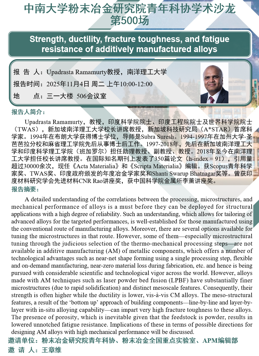 主讲人:UpadrastaRamamurty教授,南洋理工大学
