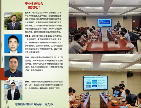 会议有幸邀请到来自中国铁建重工集团和湖南华曙高科的四位已有多年工作经验的领导老师,分别是铁建重工集团股份有限公司特级研究员兼智能制造研究设计院副院长王霄腾,铁建重工智能制造研究设计院工业设计所副所长任勇威,湖南华曙高科人力资源总监边宏,湖南华曙高科产品经理徐峰。