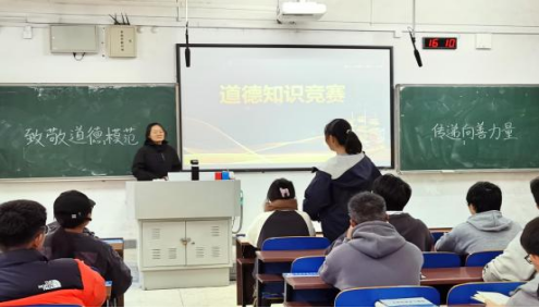 紧接着,本班团支书以习近平总书记系列讲话内容,引出加强新时代道德模范建设对与加强社会主义文明建设的重要意义,道出青年大学生在建设道德模范、担任民族复兴大任中的重要使命,使同学们热血沸腾。