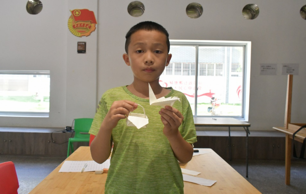 进行下午的支教时,成员们将孩子们分为两类:手工类和辅导作业类。支教团成员一致认为,动手实践能力和对知识的学习都缺一不可,孩子们可根据自身喜好进行选择,支教团成员也可以“因材施教”。当魏彤昕同学将折纸的作品给大家展示的时候,一位正在做作业的同学只是看了一眼,立即表示他也会做,便迅速拿了一张纸进行折叠,不一会便折出一个一模一样的作品。接下来的折纸成品那位小同学也只需看上几眼成品便能清楚地知道如何制作,让在场的所有人都表示十分的佩服,也让支教团成员觉得,每一位孩子都有自己的特长,需要逐渐发掘并不断培养。