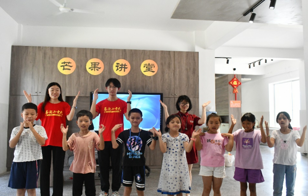 接着,支教团成员带领大家做“拍拍操”并进行比赛,以此锻炼大家的反应能力。孩子们跟随支教团成员认真地学习动作并积极进行展示。最后支教团带领大家进行大合唱,孩子们稚嫩的童声萦绕在整个活动室。