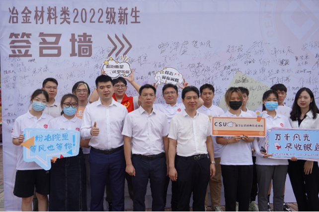 领导党委书记张武装、党委副书记甘雪萍在学工办主任孟尚儒和新生辅导员张翠、贺林豪的陪同下来到新生报到现场,看望2022级冶金材料大类的本科新生,并对负责新生报到工作的志愿者们表达慰问。