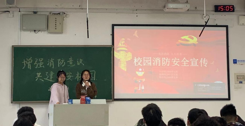 活动的第二个项目,是团支书带领同学们进行消防安全有关知识的学习。学习内容共分为三个部分:消防日的由来及介绍,日常消防安全知识普及,消防安全知识的有奖竞答以及有同学们表演的“逃生演习”小戏剧。同学们积极做好学习笔记,并且积极参与到知识竞答中,通过输入和输出相结合的方式,同学们巩固了消防知识。