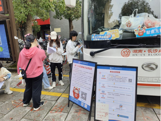 同学们来到献血点,先通过手机扫码,仔细阅读献血告知书,填写个人资料。之后,献血者们依次完成血压监测、血液类型检测等项目,检验合格后方可参加献血活动。