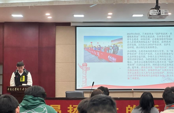 大会伊始,由主持人介绍出席比赛的各位老师,宣布比赛正式开始,全体起立齐唱团歌。随后,主持人介绍本次比赛规则,将参赛选手分为了三个小组。创新篇选手结合王奉宇、吕松等人的科技创新故事,讲述青年应是社会上最富活力、最具创造性的群体,应让创新成为青春远航的动力;奉献篇选手通过讲述援疆大学生崔久秀、为抗疫一线工作人员子女授课志愿者马雨聪等人的故事,指出“奉献”是我们每个新时代共青团员必须追求的“时代之魂”;爱国篇选手通过讲述为保边疆不后退的牺牲戍边战士、放弃美国优越生活毅然回国建设的钱学森等故事,以慷慨激昂之声表达了我们青年共青团员追随的光,是五星红旗的五角星所闪烁的光。