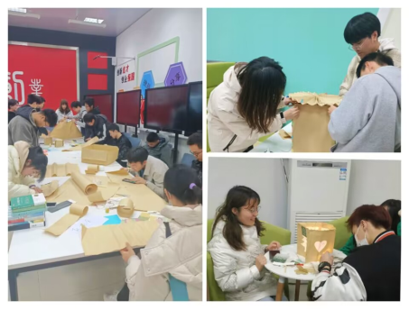 破冰游戏之后,三个团支部的同学分成十个小组制作纸灯笼。各个小组内的同学在上网查找资料的同时发挥想象,分工协作,设计出了一个又一个别出心裁、独具特色的手工作品。