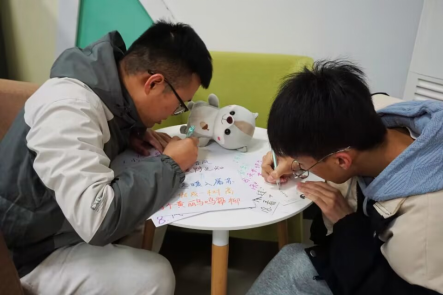 活动最后,同学们在明信片上写下对自己或者其他同学在新学期的期待和一些激励的话语,并统一收集打乱次序之后随机分发给大家。