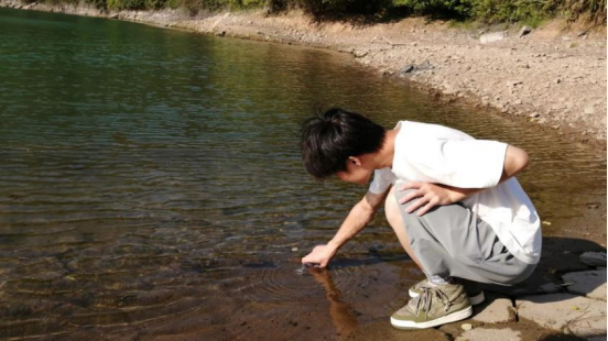 实地考察前一日晚,队员们搜集好资料,规划好上山路线。未见其真容,已闻其概况。位于国家级森林乡村东安县南桥镇寺门马皇村的双江水库是湖南四大水系之一的资江水系的发源地。到达目的地后,队员们沿着水库跋涉,经过一番实地考察,实践团成员们发现水库周围固体人造垃圾十分少。接着,队员们在其附属的红旗水库中取水,为进一步调查水质做准备。