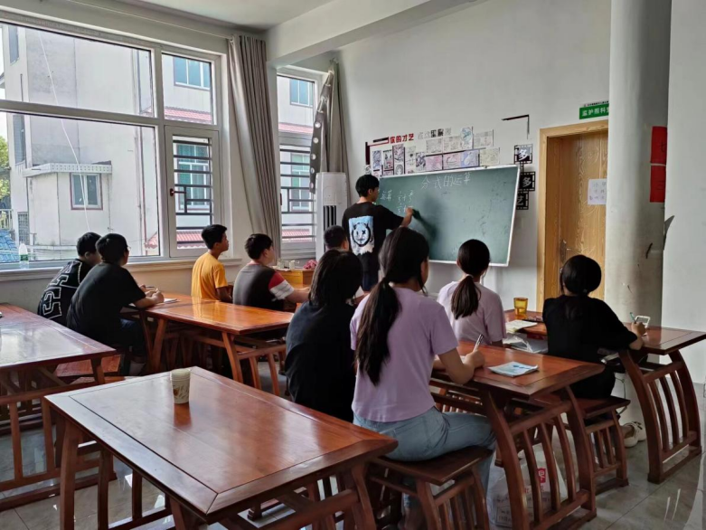 志愿者冯星宇在教学七年级学生数学的第一堂课上,为同学们讲解了分式的计算,虽然天气炎热,但是同学们学习的热情不减。在课堂上,同学们认真听讲,积极作答,良好的学习氛围深深打动了志愿者们的心,也激发了志愿者们的热情。下午,志愿者唐晓璐为五年级学生带来了一场生动有趣的英语课堂,在唐老师温柔细心的教导下,同学们摒弃了羞涩,逐渐开朗起来,一阵阵的英语朗读声从石羊塘镇国学馆传出。忙碌的日子里,时间总是如白驹过隙,必威