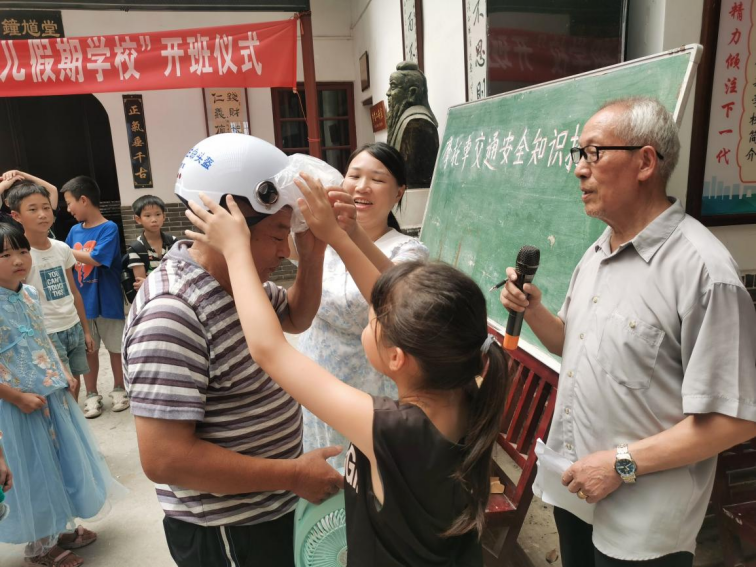 为近期表现优秀的同学们及其家长进行表彰,并奖励了他们一顶安全帽。夏春初校长表示,希望本次交通安全知识普及课堂,可以加强石羊塘镇村民的交通安全意识,减少交通安全事故的发生。