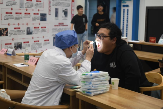 联合湘雅医院在三一大楼开展了“我为师生办实事,健康义诊进粉冶”主题活动。本次义诊邀请到了皮肤科郭佳、黄楚楚,口腔科姚锦烽,骨科刘俊彦,生殖医学中心陈晶晶五位博士研究生为同学们看诊。