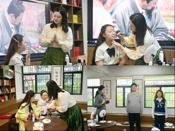 接着,沙龙就形象礼仪与仪态礼仪两部分展开,罗洁婷老师作为国家化妆师职业资格证持证者,从专业角度分析了在场同学的面部特色和适合的着装风格,语言风趣幽默,绘声绘色,现场一片欢声笑语。随后,罗老师邀请本次教学模特上场,针对模特的个人特色,教授同学们上妆手法和化妆过程中的注意事项。李卉淼老师则是根据《礼记》的规范要点结合现代礼仪要求,现场指导同学们坐姿、站姿、行姿、神态、手势等,为同学们塑造更好的形体仪态。