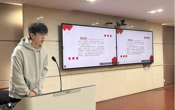 大会伊始,由新媒体中心主任于旻澍介绍各个部门的部长、副部长、指导老师贺林豪,以及各部门主要工作内容。此外,他也向加入新媒体中心的新干事们表示欢迎。