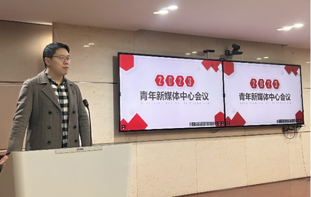 青年新媒体中心见面交流会在校本部三一大楼409报告厅展开。青年新媒体中心指导老师贺林豪、主任于旻澍、副主任洪子璇、王硕,各部门部长、副部长以及干事参加会议。会议由新媒体中心主任于旻澍主持。