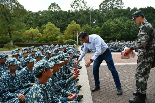 最后,在教官的协助下,各位领导以及副班导们给同学们分发了学院专门为学生们定制的可乐和橙子,并对参训学生表示关心勉励。太阳毒辣不减,粉冶院为同学们准备的专属饮料给同学们带来清凉,橙子寓意希望让同学们感受到关心与温暖。同学们对学院领导的慰问表示了感谢,并立志要不断磨练自身意志,不虚度军训的每一分每一秒,成就更好的自己。