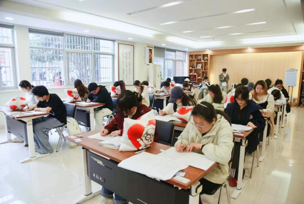 下午14时,复赛正式拉开帷幕,参赛选手佩戴专属准考证,凭有效证件有序签到入场。考场上,选手们沉着冷静、认真作答,围绕心理健康基础知识、朋辈互助沟通技巧、常见心理问题识别与应对等核心内容从容应答,充分展现出扎实的理论功底与积极向上的备考态度。监考人员严格执行考核纪律,全程规范履职,全力保障比赛公平公正;现场指引清晰明确,物料补给及时到位,每一处细节都彰显着主办方的细致筹备与人文关怀。