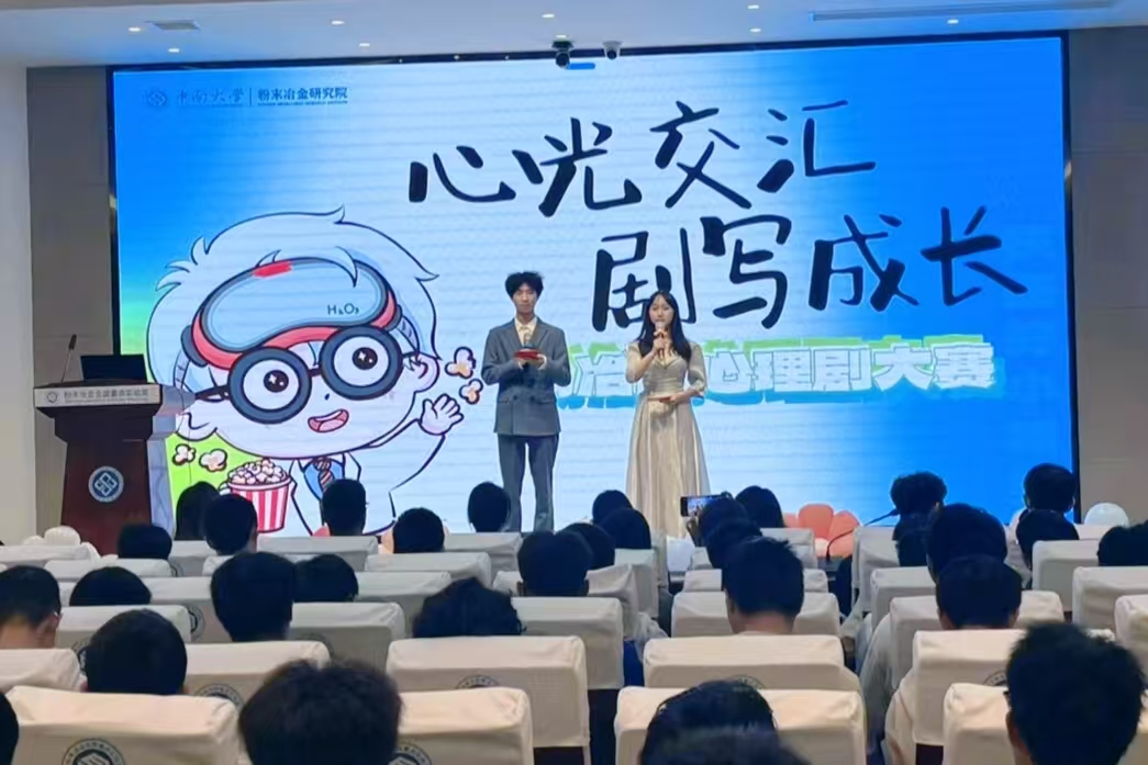 本次比赛教师评委团由心理健康中心熊燕、粉冶院学工办副主任张翠、材料院辅导员张彦隆、粉冶院2025级本科生辅导员于旻澍组成;学生评委团由新青年话剧团团长张涵悦、2024年心理短剧大赛冠军队伍负责人李欣怡、亚军队伍负责人杨皓元组成;大众评审团由各参赛队伍代表组成。比赛伊始,主持人葛明濮和淦子彤为大家介绍了参赛规则以及评分标准