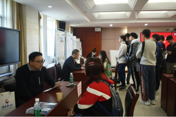 本次招聘会共有6家企业参与,同学们通过展板和手册了解公司概况、招聘要求以及薪资待遇后,选择自己感兴趣企业的招聘负责人进行深入交流。双方就公司研究方向、岗位所需专业技能、个人品质、福利高低和升职空间等方面展开问答。