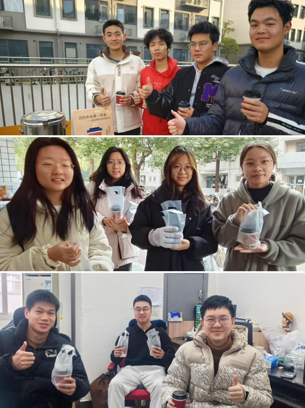 15栋、35栋和31栋,为备战期末考试的同学们送上姜茶。每一位接过姜茶的师生,都被粉冶院这份特别的新年关心所打动,杯杯相交的温暖在手中传递,驱散了冬日的寒意。