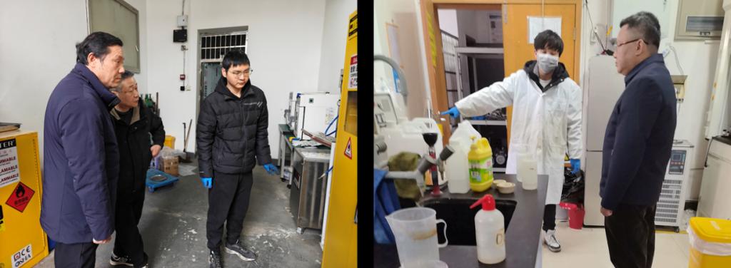 会后,院领导班子分组带队对全院实验室开展了“无死角”全覆盖安全环保隐患排查。本次排查聚焦危险化学品、高温设备、气瓶气路等关键危险源,针对发现的隐患问题,检查队伍要求立查立改,复杂隐患确定责任人,制定整改方案、明确整改时限,把好风险关口。