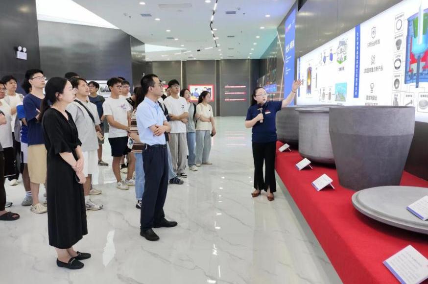 接着,学生们来到中冶长天国际工程有限公司参观。在校友康建刚的带领下,学生们依次参观了公司展厅、科研设计中心园区、国家烧结球团装备系统工程技术研究中心实验室。同学们通过一系列讲解,了解了企业的发展历程和主要业务,以及公司在工程设计方面的先进技术和实际应用。同时,亲历前沿科研设备和技术的运作过程,激发了他们对工程技术研究的浓厚兴趣。