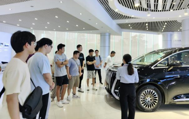 紧接着,学生们来到了比亚迪股份有限公司,学生们首先参观了汽车展厅,领略了比亚迪新能源汽车的先进技术和独特魅力。随后,他们走进了四大工艺参观通道,亲眼见证了汽车从零部件加工、喷涂到整车装配的全过程。在工厂参观环节,学生们对生产线上的精密设备、严格的质量控制流程和高效的生产效率赞叹不已,对现代制造业的先进性和复杂性有了更加直观的认识。