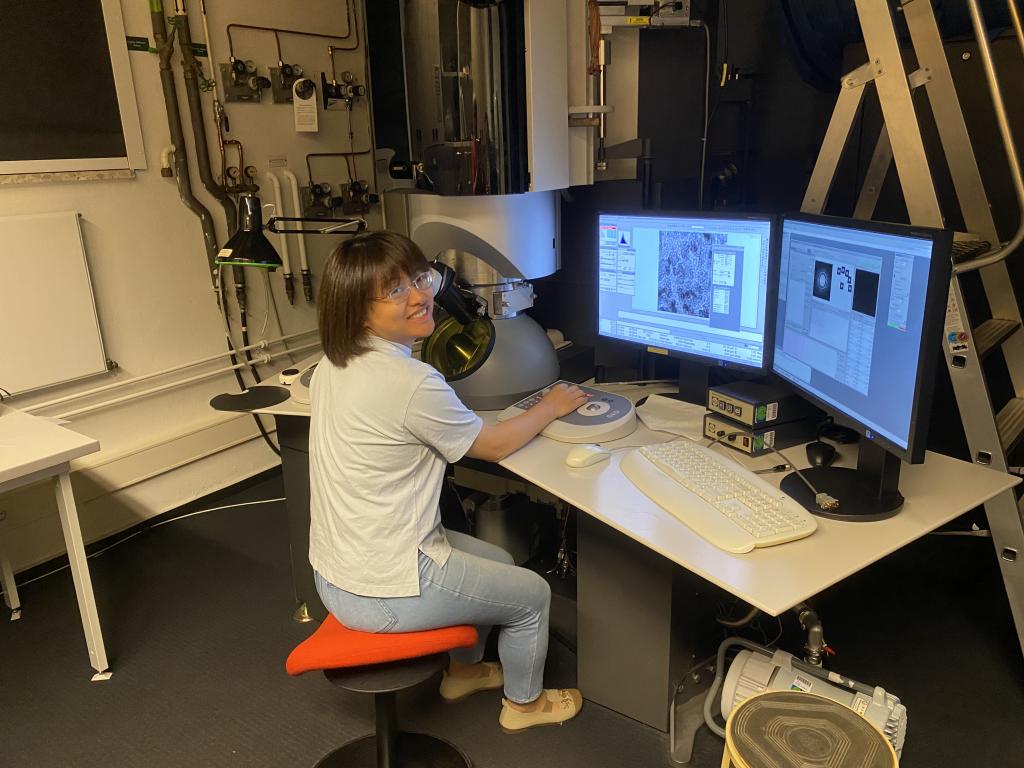 王丽副教授在操作Helmholtz Zentrum Hereon研究所的球差电镜Titan 80-300