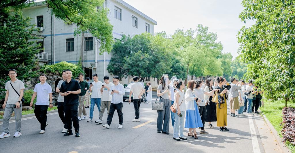 漫步院内,校友们曾经熟悉的学科楼栋、走廊现已焕然一新,实验室的科研设备也进行了升级。“要是晚毕业几年,就能用上这么好的设备了!”校友们纷纷打趣,并在毕业时合种的桂花树下驻足许久。大家看着当年的小树苗如今亭亭如盖,不禁感慨时光飞逝。