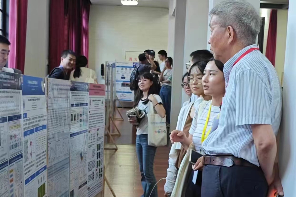 图4. 参会学生向张统一院士介绍墙报