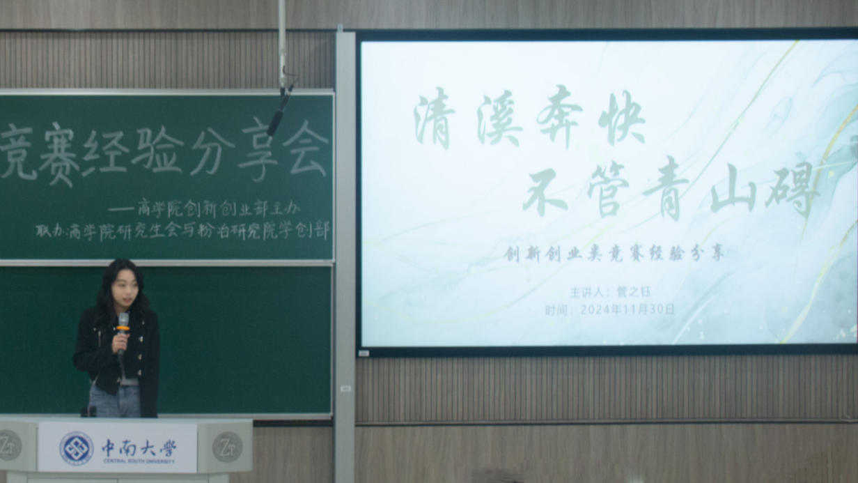 管之钰、彭盼君同学分享经验。前者从如何组队、怎样撰写项目书的格式、美化答辩演说形式等细微处切入,由点及面,将竞赛中的细节展开分析,将经验倾囊相授,让竞赛变得“有章可依”。