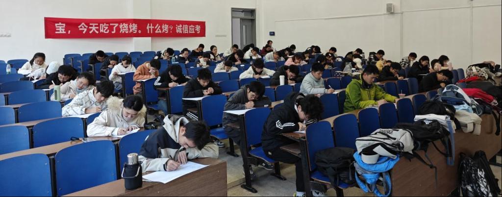 2024级各班副班导担任监考,分发试卷,维持考场纪律,确保考试顺利有序地进行。考试过程中,同学们间隔就坐,认真答题。考试结束后,学生们普遍反映此次考试题目具有较高的质量和区分度。通过此次考试,既能够检验他们对基础知识的掌握情况,又能让他们认识到自己在知识运用和综合分析方面的不足。