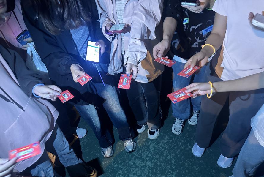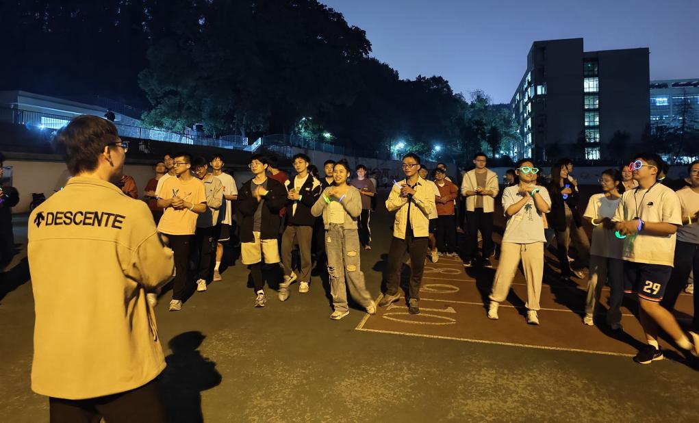 活动还未正式开始,操场上就已经聚集百余名同学,他们戴上荧光手环,脸上洋溢着期待与兴奋,现场气氛热烈,同学们跃跃欲试。