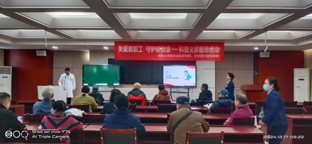 离退休办联合长沙爱尔眼科医院,在三一大楼409会议室开展“关爱教职工 守护眼健康”服务活动。本次活动旨在提高我院教职工、退休职工及其家属的眼健康意识,以早检查、早预防为原则,为教职工、退休职工及其家属提供优质专业的眼健康服务。