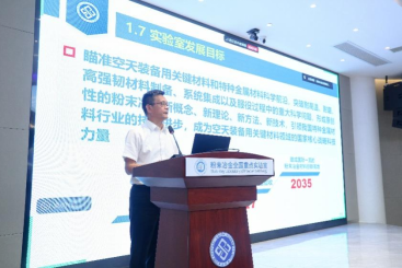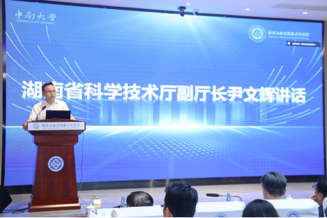 湖南省科技厅副厅长尹文辉讲话。他指出,粉末冶金全国重点实验室是我国材料领域不可或缺的战略科技力量,是我省的“硬核”“老牌”“重量级”国家级重点实验室。真诚希望各位院士、专家聚焦实验室使命定位,多为实验室的建设发展献策把脉,提出宝贵意见建议。省科技厅也一如既往地在政策、资金、项目、人才等方面做好服务支持。