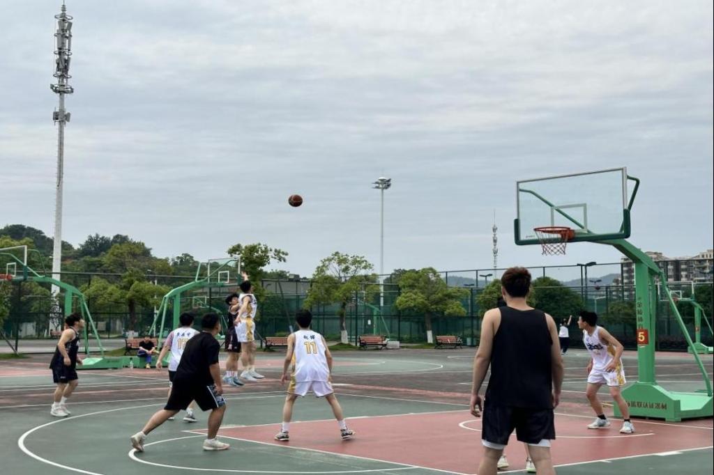 九支参赛队伍斗志昂扬,蓄势待发。赛前,队员们精神抖擞,在教练的指导下认真热身,反复演练战术,力求以最佳状态迎接挑战。赛场上,球员们攻防转换行云流水,既有闪电般的快速突破,又有精准的三分远投,每一次妙传、抢断和暴扣都引爆全场,观众席上的呐喊声、掌声此起彼伏,将比赛氛围推向高潮。赛后,无论胜负,各队球员相互击掌致意,真诚交流比赛心得,以行动诠释了“友谊第一,比赛第二”的体育精神,展现了团结进取、奋勇拼搏的青春风采。