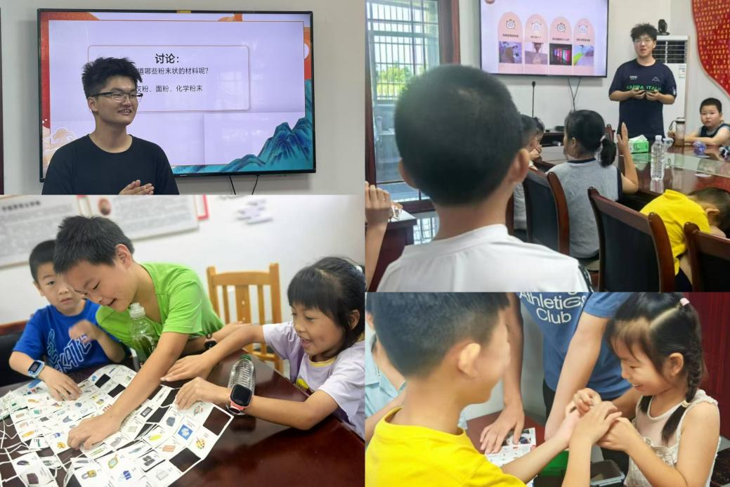 支教活动中,林泉以“生活中的粉末材料”为题,通过“大象牙膏”实验激发孩子们的兴趣,同时用朝代变迁串联粉末冶金知识,结合夏商青铜冶炼和唐代面食文化,生动讲解了粉末材料的应用;李思霖则从环境污染切入,系统介绍垃圾分类标准及四色分类法,通过模拟分类实验强化孩子们的环保认知;吴瑜童围绕动力机械主题展开教学,通过经典电影、趣味动画等方式讲解了蒸汽机、内燃机的运作原理……课堂内容丰富、互动性强,有效提升了学生的科学素养和环保意识。