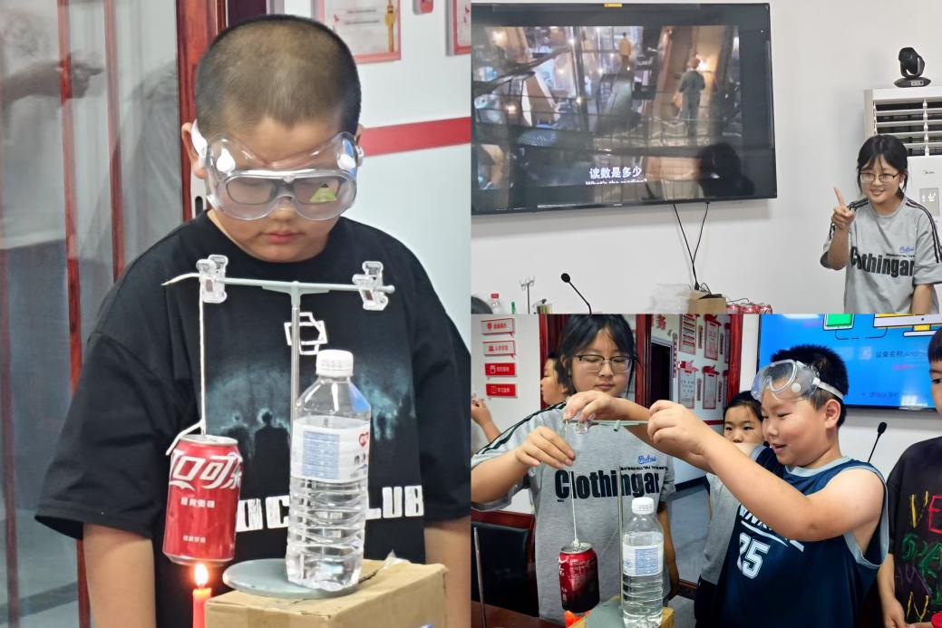 在实验环节,实践团成员带领孩子们利用易拉罐制作“热动力走马灯”。通过亲自操作与观察,孩子们直观地领略到水蒸气运转的奥秘。生动有趣的科普课堂让孩子们既掌握了实用的科学知识,又培养了动手实践和创新思维能力。