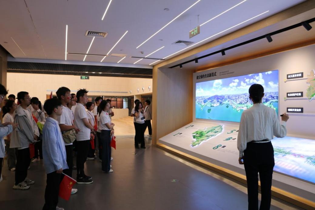 随后,同学们转赴湘江新区城市馆。在讲解员的细致解说下,同学们依次参观了“规划历程”、“发展现状”与“未来愿景”等展区,系统了解了新区的战略擘画与建设成就,特别是梅溪湖国际新城与大科城的快速发展,沉浸式地触摸到了城市未来的发展脉搏与澎湃动能。