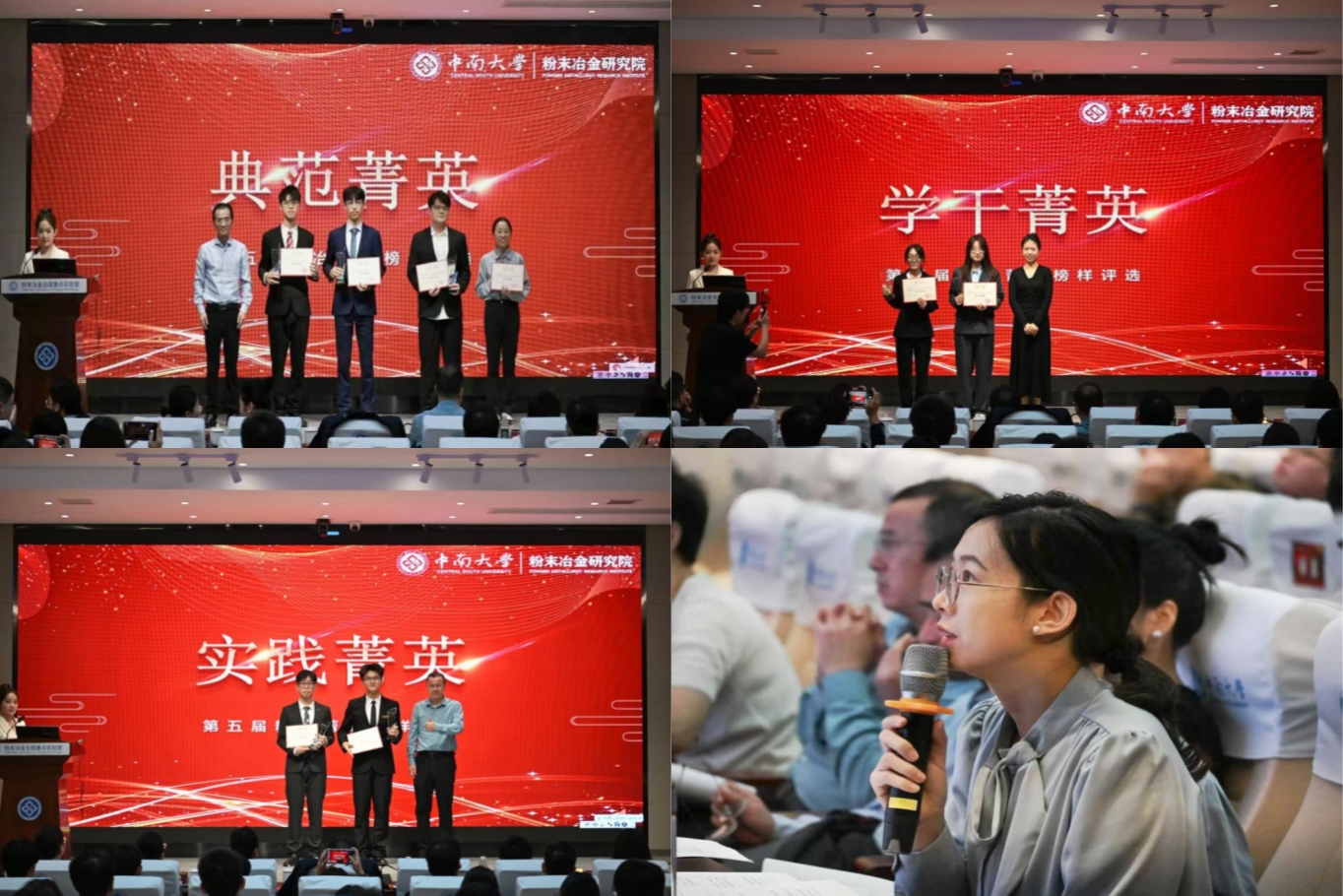最终,8名学子获得本届“粉冶菁英”称号。其中,研究生李丽、罗旷昕与本科生毕鑫、张子纯获评最高荣誉“典范菁英”;研究生姚弈枫、本科生刘一鸣获评“学干菁英”;研究生李飞宏、本科生林泉获评“实践菁英”。