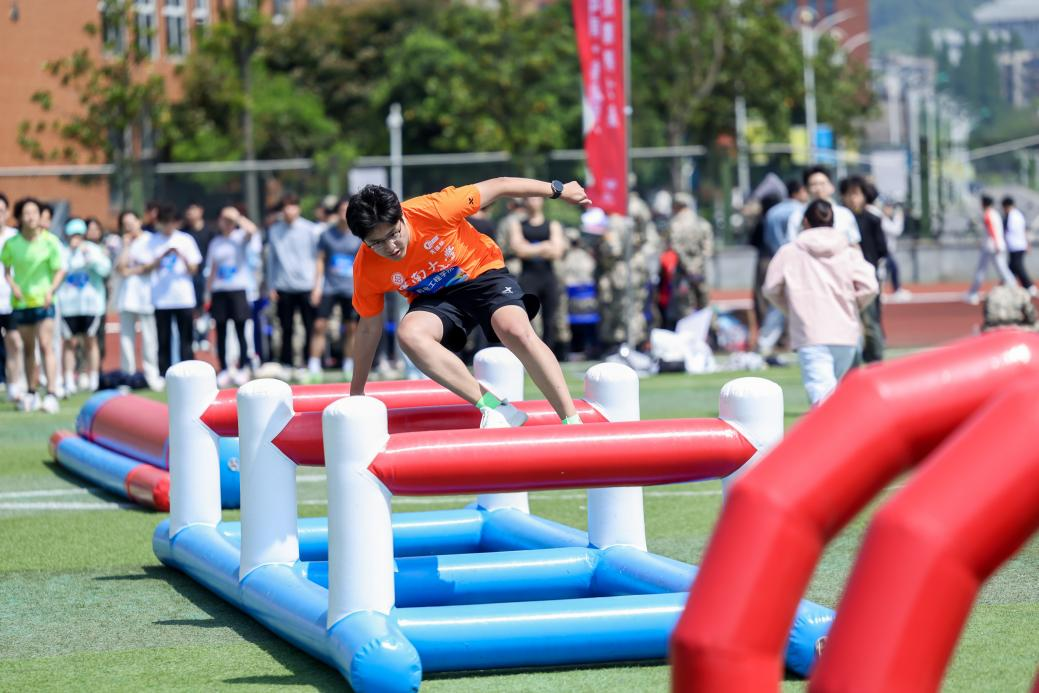 本次障碍跑采用团队全员接力闯关模式,设置了平衡木、充气跨栏、连续障碍、跃龙门四大关卡,综合考验选手的平衡专注力、肢体协调性与爆发力。赛事节奏紧凑、考验全面,既比拼个人体能素质,更锻炼团队协作能力。