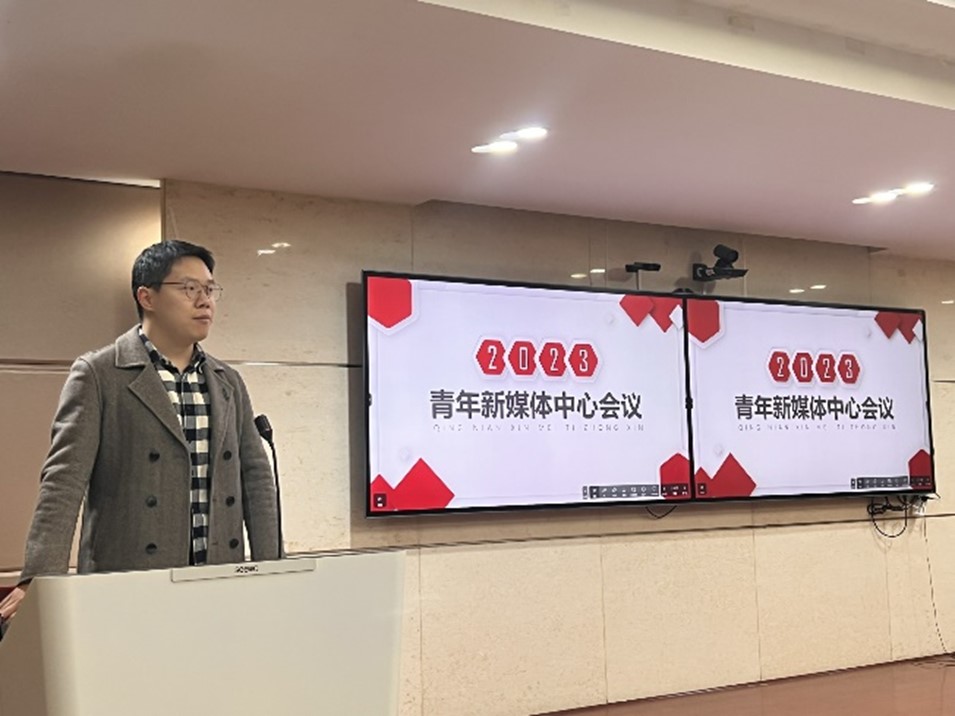 青年新媒体中心见面交流会在校本部三一大楼409报告厅展开。青年新媒体中心指导老师贺林豪、主任于旻澍、副主任洪子璇、王硕,各部门部长、副部长以及干事参加会议。会议由新媒体中心主任于旻澍主持。