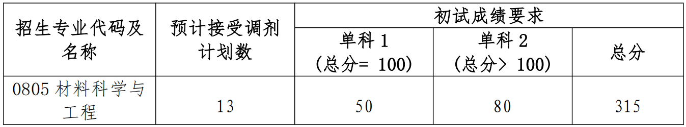 (三)第一志愿报考“0805材料科学与工程”、“0856材料与化工”、“0702物理学”、“0703化学”、“0801力学”的考生。