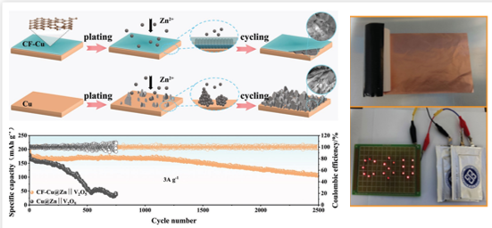 针对锌枝晶和副反应问题,在锌金属上可控构建稳定的功能性保护界面层,揭示负极界面调控机制,实现高效稳定的“亲锌疏水”锌负极开发。