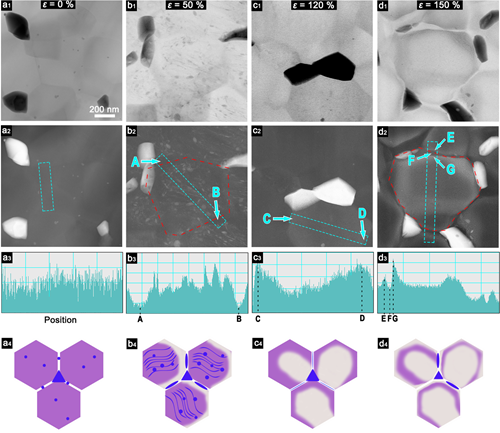 图4:Al-Zn合金室温超塑性变形过程中的结构演变。