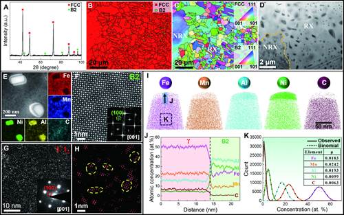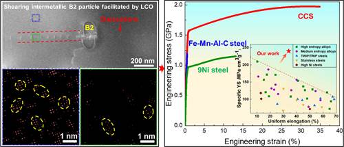 图1:Fe-Mn-Al-Ni-C钢位错剪切金属间化合物变形新机制。