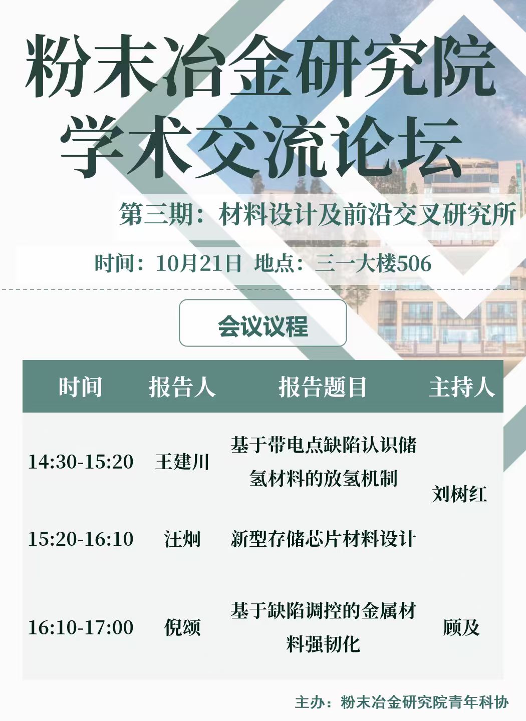 主讲人:Professor Dr. Sergey Sobolev时间:2025年8月28日 10:00地点:三一大楼406-1报告摘要:In this presentation we discuss application of the localnonequilibrium transport models to practically important situation suchas rapid alloy solidification, heat conduction in metals underfemtosecond laser pulses, heat conduction nano systems andmetamaterials.主讲人简介:Professor Dr. Sergey Sobolev is t...