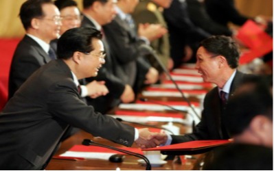 国家主席胡锦涛为黄伯云院士颁发国家科学技术发明一等奖